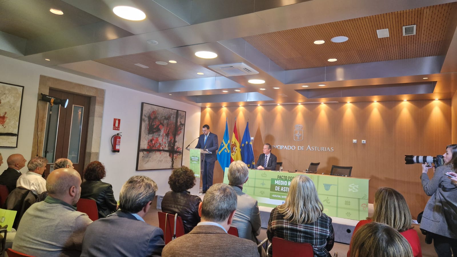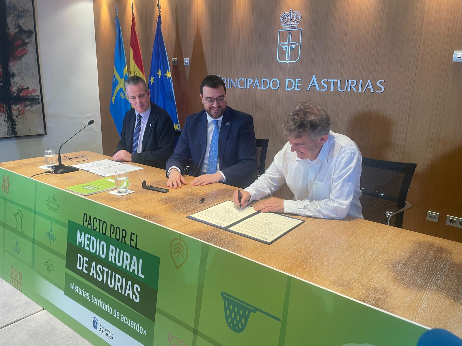 En el acto de rúbrica han participado representantes del Principado, la Federación Asturiana de Empresarios (Fade), la Universidad de Oviedo, la Federación Asturiana de Concejos (FACC), la Federación de Cofradías de Pescadores, la Red Asturiana de Desarrollo Rural (Reader), las cooperativas agroalimentarias y las organizaciones sindicales UCA, Usaga y COAG.